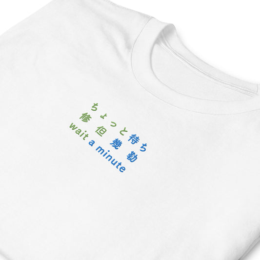 ちょっと待ち - 刺繍 ユニセックス Tシャツ100% 綿- UNIWARI