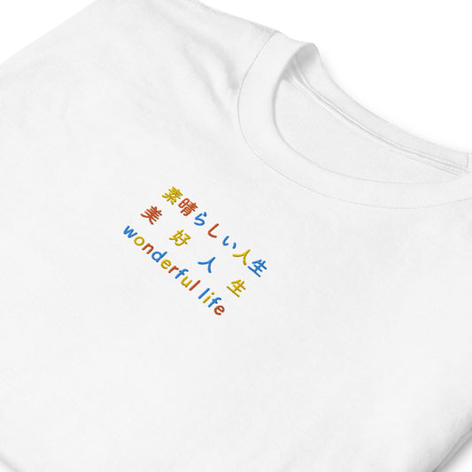 素晴らしい人生 - 刺繍ユニセックス T シャツ 100%綿 - UNIWARI