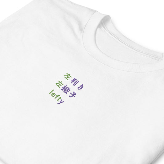 左利き - 刺繍 ユニセックス Tシャツ100% 綿- UNIWARI