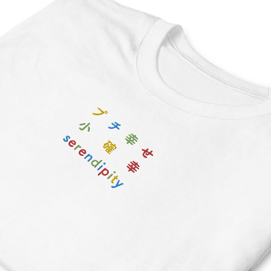 プチ幸せ - 刺繍 ユニセックス Tシャツ100% 綿- UNIWARI