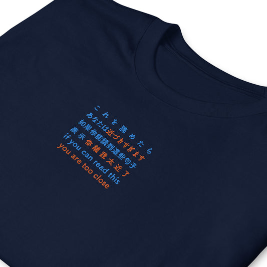 あなたは近づきすぎます - 刺繍 ユニセックス Tシャツ100% 綿- UNIWARI