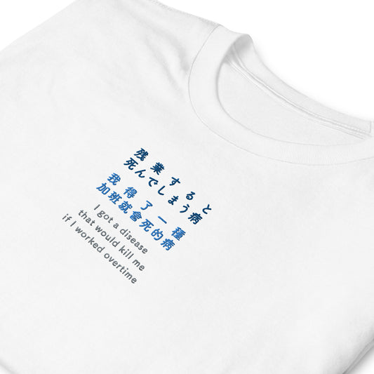 残業すると死んでしまう病 - 刺繍 ユニセックス Tシャツ100% 綿- UNIWARI