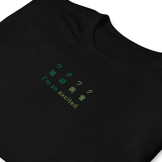 ワクワク - 刺繍 ユニセックス Tシャツ 100%綿 - UNIWARI